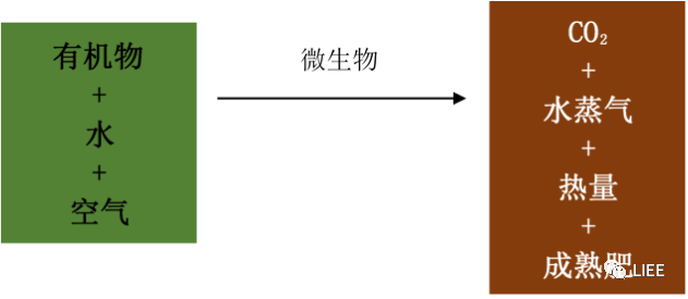 堆肥(composting)指利用自然界广泛存在的细菌、放线菌和真菌等微生物,有控制地将固体废物中可降解有机废弃物转化为稳定的腐殖质的生物化学过程。堆肥实际上是一种生产有机肥的过程,最终产出肥料所含营养物质比较丰富,肥效长而稳定,同时有利于促进土壤结构的形成,能增加土壤保水、保温、透气、保肥的能力。有机物的好氧生物分解十分复杂,可用下列示意图来表示: