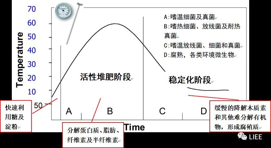 通过优化和控制关键的堆肥过程参数,如原料质量(分类出来的厨余纯度)、温度、含水率和pH值,可以大大加速有机废弃物降解的过程,这也是有控制的堆肥与纯自然分解的显著区别。一个合理的堆肥体系是一个含有多种微生物、相互作用显著的生态系统,了解生物降解有机物的分解过程中所涉及的物理、化学和生物过程,对于科学设计堆肥机来说非常重要。