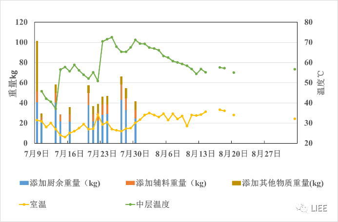 - 2019.7.12-2019.8.1每日连续添加厨余50kg左右