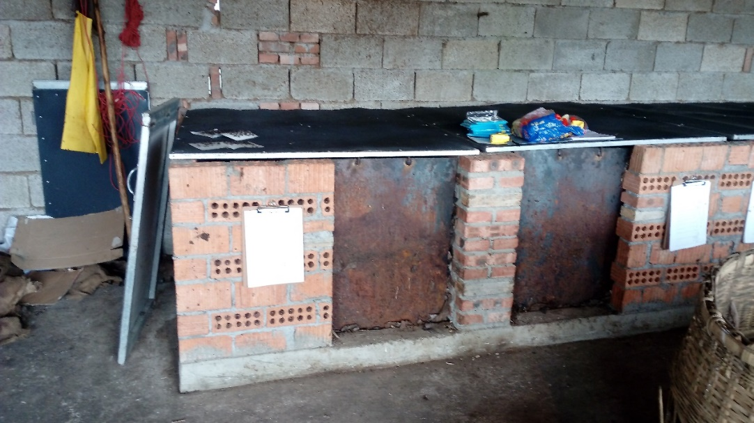 基本情况:采用自制空心砖堆肥池进行堆肥,陆续修建16个堆肥池。堆肥原料为遵道镇居民的厨余以及学校、街边饭店的部分餐厨。生、熟厨余比例约为1:1。2019年3月至2019年9月,共进行3轮堆肥。堆肥场所为棚屋,堆肥场地面经过硬化处理,场地内有化粪池。堆肥池采用空心砖两面砌墙,背面靠墙,正面使用可提拉铁门,堆肥池顶部带有金属网盖。堆肥池底砖砌,具有一定斜度,便于渗滤液流出,渗滤液通过地面沟槽流入化粪池。每个堆肥池1500L左右,尺寸基本为长宽高125cm135cm90cm。
